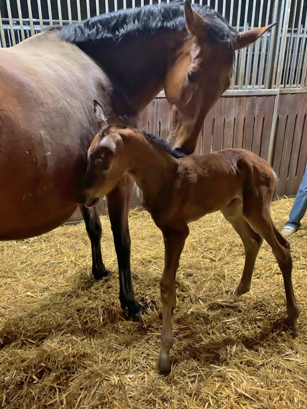 Am 09.03.2020 gegen 2 Uhr morgens schenkte uns unsere DIVA RUBINA III von Dr. Jackson/Rubinstein ein wunderschönes Stutfohlen von ERDINGER. Es waren nur lange Füsse am Anfang zu sehen aber sie stand trotzdem schon nach einer kurzen Zeit und war eifrig bemüht lange genug zu stehen um an die Milchbar zu kommen.