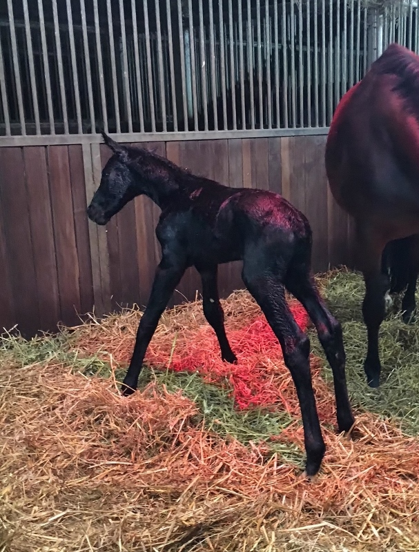 Die Fohlensaison 2018 wurde bei uns von einem wunderschönen, sehr langbeinigen und modernen Rappstutfohlen von Frascino aus unserer Staatsprämien/Elitestute "DOLCE VIAT II" am 10.02. gegen 18.40 Uhr eröffnet