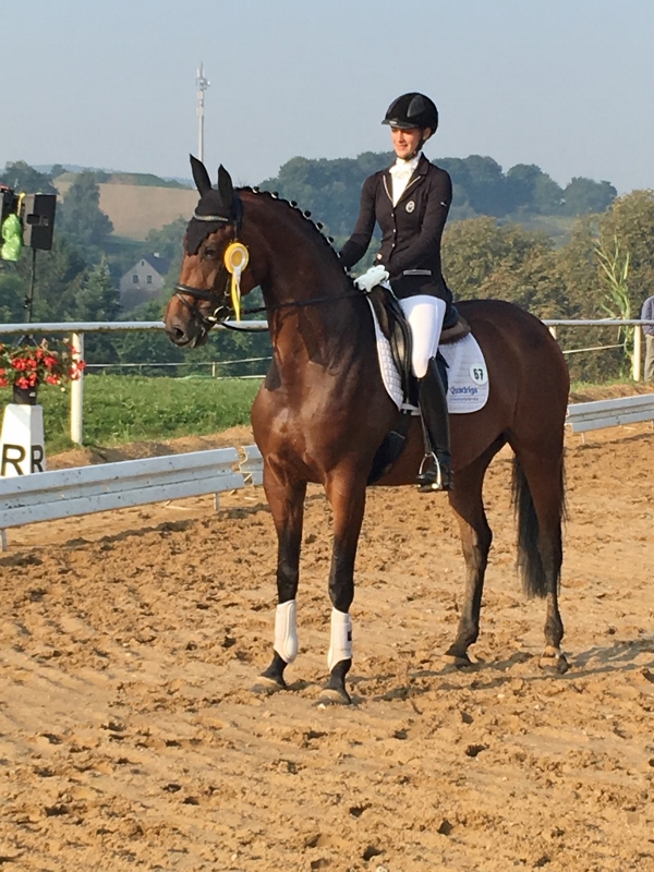 Heute konnte unsere Prämienstute "DONNA RUBINA II" (v. Dr. Jackson/Fürst Heinrich/Rubinstein) in ihrer ersten Dressurpferde A gleich mit 8,2 gewinnen .