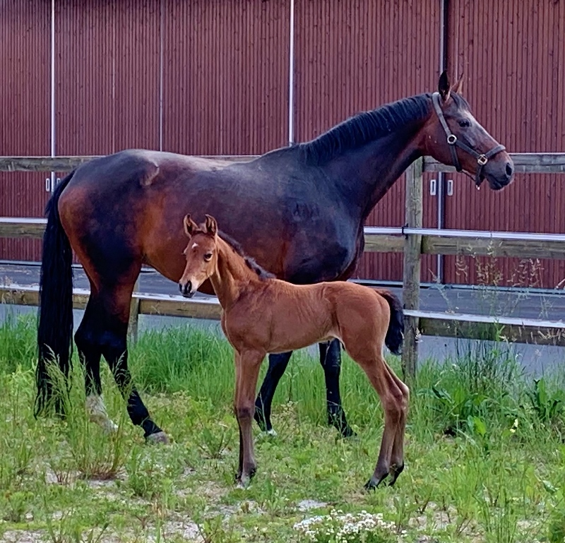 Ganz langbeiniges und sehr modernes braunes Hengstfohlen von Sir Heinrich/Ron Rubin/Campari hat am 29.05.2020 das Licht der Welt erblickt. Ganz entzückender junger Mann der soft stehen könnte und sich auch bei der Suche auf nach der Milchbar als sehr schlau herausgestellt hat. Wir sind sehr verliebt in den kleinen Mann da er alles an Bewegung, lieber Art usw.. mit bringt was man sich von so einem jungen Fohlen wünschen kann.